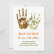 deux tampons de mains avec les lettres du nom de la mariée et du marié. Création originale drôle et douce pour les annonces de sauvegarde de la date.