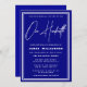Une typographie blanche et audacieuse sur un arrière - plan bleu marine crée une invitation élégante et moderne à la fête du 100e anniversaire. One Hundredth est écrit dans un grand script distinctif. Le nom du célébrant de l'anniversaire est écrit en gras. Un double cadre blanc entoure le texte. Très facile à personnaliser.