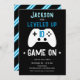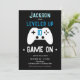 Simple minimaliste jeu contrôleur de jeu invitation d'anniversaire de gamer. Vous avez atteint le niveau de n'importe quel âge ! Tout le texte est personnalisé. Fun simple néon lignes sur le dos de la carte.