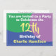 invitation pour une fête d'anniversaire spéciale avec nom, et nombre d'années. Invitation de fête pour 12 ans. Ajoutez vos propres détails.
