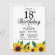 Invitation du 18e anniversaire du tournesol. Fleurs florales et Arrière - plan blanc. Country Vintage Retro. Femmes Anniversaire. 12ème 13ème 15ème 16ème 18ème 20ème 21ème 30ème 40ème 50ème 60ème 70ème 80ème 90ème 100ème, tout âge. Numérique imprimable. Pour plus de personnalisation, cliquez sur le bouton "Customiser" et utilisez notre outil de conception pour modifier ce modèle.