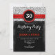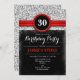 30th Birthday Invitation Design élégant en noir et fausse parties scintillant argent avec une pointe de rouge. Parfait pour une fête du trentième anniversaire féminin. Peut aussi être customisé pour n'importe quelle année!