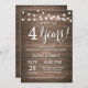 Invitation du 4e anniversaire du Mariage. Arrière - plan rustique en bois. Éclairage à cordes. 1ère, 2ème, 3ème, 4ème, 5ème, 10ème, 15ème, 20ème, 25ème, 30ème, 35ème, 40ème, 45ème, 50ème, 55ème, 60ème, 65ème, 70ème, 75ème, 80ème, n'importe quelle année. Anniversaire adulte. Fête d'anniversaire d'une femme ou d'un homme. Pour plus de personnalisation, cliquez sur le bouton "Customiser" et utilisez notre outil de conception pour modifier ce modèle.