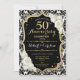 Golden 50th Mariage Anniversary Invitation Elégant design or noir blanc avec fausse parties scintillant. Style, motif damassé, police de script avec des roses blanches.