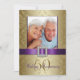 Célébrez votre anniversaire de mariage dans le style avec cet élégant effet or damask 50th Mariage Anniversary Invitations avec couleur violet. Ces invitations élégantes sont un merveilleux mélange de traditionnel et de moderne. Sur le devant de la carte, remplacez l'exemple de photo par pour votre photo de vous en couple maintenant ou ajoutez votre photo mariage d'il y a 50 ans. Les graphiques informatiques donnent à cette carte un aspect 3D même si le ruban satiné, le broche diamant et le numéro 50 d'or ne sont qu'une image photographique imprimée sur la carte. Veuillez commander sur du papier blanc ordinaire tel qu'il est montré, pour que tous les détails de conception se démarquent. Au verso, ajoutez les détails de l'invitation à la fête du 50e anniversaire et le texte RSVP. Cette carte ne contient aucun embellissement. Tout ce que vous voyez est imprimé sur une surface de carte plate. Voulez-vous un ruban couleur différent ou aider à la conception de votre invitation? Veuillez contacter luxuryweddinginvitations@gmail.com. Design par Elke Clarke© 2012 pour Monogram Gallery. Carte graphique sous licence.