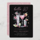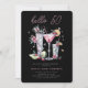 Modern Glittery 50th Birthday Party Invitation - avec cocktails étincelants avec typographie moderne avec une petite parties scintillant jetée dans. Argent et rose roux sont dramatiques sur un arrière - plan noir. L'arrière de l'invitation est la coordination de la parties scintillant pour une touche festive.