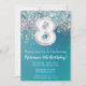Invitation de 8e anniversaire Parties scintillant Turquoise et argent Invitation de 8e anniversaire pour un enfant de 8 ans avec écriture de script moderne et ballons de papier amusant.
