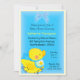 Cute Yellow Duck Baby invitations douche avec un arrière - plan bleu et un canard avec un bib. Customisez avec les détails de votre fête.