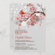 Invitation Whimsical Winter Snow Baby shower Invitation personnalisable parfait pour les fêtes de vacances ou de Noël. Il présente un arrière - plan gris avec des fleurs et des ornements gris et rouges et un joli oiseau avec une écharpe.