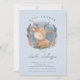 Baby shower bébé doux hiver avec un chevreuil dormant avec des branches de pin et des baies sur un arrière - plan neigeux bleu clair. Visitez notre boutique pour voir toute notre collection de dessins animaliers hivernaux.