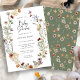 Célébrez dans le style avec cette invitation baby shower enchanteresse, avec une délicate couronne de fleurs sauvages vintages, des herbes séchées et des feuilles verts à la sauge douce qui encadrent vos détails de l'événement avec une élégance sans effort. Les teintes terreuses de bronze, de rouille, de terre cuite, d'orange brûlée et de vert sauge apportent chaleur et charme, tandis que l'arrière - plan sophistiqué vert sauge ajoute profondeur et raffinement. Le dos présente un motif de coordination qui cravate tout ensemble en toute transparence, créant un design cohésif et visuellement époustouflant. Avec son mélange parfait de beauté boho rustique et de sophistication moderne, cette invitation est le moyen ultime de présenter votre journée spéciale. Commencez votre fête avec un design qui s'adapte à votre style et vous ouvre la voie à un événement inoubliable !