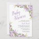 Invitations de douches pour bébé sur mesure et abordables. Ce joli design féminin a une bordure florale aquarelle avec fleurs violettes pastel et verdure. Personnalisez le design avec les détails de votre soirée baby shower. Reverse side a un motif de bande d'aquarelle violet ou utilisez l'espace pour ajouter du texte et des photos supplémentaires. Cliquez sur Customiser pour choisir n'importe quelle couleur arrière - plan et modifier les polices de texte et les couleurs pour créer une invitation unique de baby shower printemps ou été pour votre petite fille.