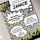 appelez toute supermaman ! fêtez votre fête de baby shower des couples de super-héros avec cette invitation de baby shower de super-héros. Cette invitation de super-héros met en vedette gotham city et metropolis city sky scrapper sur un super-héros arrière - plan de style bande dessinée. parfait pour votre superman baby shower party, batman baby shower party et général superhéros fête de baby shower thématique.