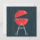 Grill rétro Red Kettle avec Fumée de Puffy et Arrière - plan de grains de bois noir. Customisez avec votre propre texte. Idéal pour toute fête en plein air. Le grill de la bouilloire et la fumée blanche peuvent être déplacés à n'importe quelle position sur la carte. Illustration d'origine par pj_design. com