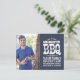 Cool rustique graduation barbecue invitation à la fête de barbecue avec la typographie vintage en détresse. Utilisez les outils de conception pour choisir n'importe quelle couleur d'arrière - plan pour coordonner avec les couleurs de votre école ou le thème de votre fête. Ajoutez les détails de votre photo principale et de votre fête de remise de diplômes sur le devant avec une deuxième photo, votre nom, votre année de classe et le nom de l'école ou tout autre texte sur le côté arrière. Utilisez les outils de conception pour ajouter plus de photos et de texte, modifier des polices et des couleurs pour créer un faire-part de graduation unique et une invitation de fête.