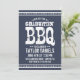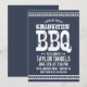 Cool rustique graduation barbecue invitation à la fête de barbecue avec la typographie vintage en détresse. Utilisez les outils de conception pour choisir n'importe quelle couleur d'arrière - plan pour coordonner avec les couleurs de votre école ou le thème de votre fête. Personnalisez-le avec les détails de votre fête de remise des diplômes. Espace vide supplémentaire sur le côté arrière pour les photos ou plus de texte. Cliquez sur Customiser pour modifier les polices et les couleurs afin de créer une invitation unique pour le BBQ graduation.