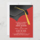 Invitation de Graduation rouge moderne avec un casquette noir gris & goût or.