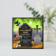 Envoyez une invitation colorée cool Halloween Bash pour votre fête d'Halloween. Invitation colorée verte, violette et orange avec vos informations sur la pierre tombale dans un cadre classique de cimetière d'Halloween. Commencez la fête avec un grand invitation !