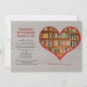 Cette invitation grise, à grains de bois, arrière - plan, tient un grand coeur rouge ouvert avec une image de rayonnages remplis de livres. Parfait pour vos événements de club de lecture.La carte est facile à customiser avec votre libellé, police, couleur de police et choix de six types de papier.
