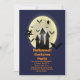 Invitation de soirée costume avec un design éffrayant. Chauves-souris, araignées, manoir déplaisant et sorcière volante sont ce dont vous avez besoin, Ajustez les détails sur les côtés avant et arrière de la carte pour faire une invitation éffrayante Halloween partie..