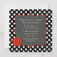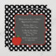 Invitation de l'occasion du professeur d'amusement, faite dans une forme carrée avec un arrière - plan noir et blanc de point de polka. Les graphiques d'un secteur gris encadré décoratif rouge et blanc des textes de point de polka, au milieu, a une pomme rouge simple, sur en bas à gauche le faisant le coin. Le postérieur est fait dans le même motif de point noir et blanc de polka. Personnalisez tout le texte pour votre événement. La grande invitation chacun aimera.
