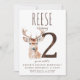 Célébrez le 2ème anniversaire de votre petit avec cette charmante invitation au thème du cerf ! Doté d'un adorable cerf aquarelle, cette invitation est parfaite pour une fête mémorable et fantaisiste. Customisez tous les détails facilement en ligne pour le rendre unique à vous. Imprimée sur papier de haute qualité, cette invitation ravira vos invités et donnera le ton d'une merveilleuse fête. Commandez maintenant pour créer une belle conservation pour cette étape spéciale !