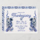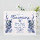 Invitation d'action de grâce dans le style bleu délicieux avec faisans et tournesols.