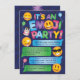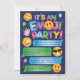 Vous avez une fête émoticônes ? Cette invitation est parfaite pour exciter vos invités ! L'invitation est colorée, lumineuse et amusante avec des icônes émoticônes et des blocs de textos avec les détails de l'invitation. C'est cool, intelligent et tendance. Les couleurs principales sont le bleu, l'orange et le vert. Le dos de l'invitation a un avec un casquette de fête ! Il est idéal pour les anniversaires et toutes les occasions, même pour les enfants ou tous les âges!