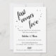 Simple script noir avec support en motif rayé noir et blanc, invitation à la fête d'engagement.