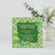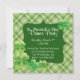 Invitation élégante de partie du jour de Patrick de saint faite à un arrière-plan vert de plaid. Un secteur vert bordé par ton argenté des textes, au milieu, a la décoration verte de fête de shamrocks en bas à gauche et les coins hauts droits. Personnalisez tout le texte blanc pour adapter à vos besoins d'événement.