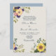Présentant notre Elegant Boho Botanical faire-part de mariage, un mélange harmonieux d'élégance moderne et de charme rustique. Le décor bleu poussiéreux et sophistiqué ouvre la voie à de délicates fleurs roses d'aquarelle et des tournesols rustiques, créant une fusion captivante de styles. Idéale pour les mariages de automne chics, cette invitation respire le charme et le raffinement, ce qui en fait un choix parfait pour les couples à la recherche d'une touche intemporelle mais contemporaine pour leur journée spéciale.