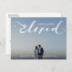 Surprenez vos invités avec une carte postale de votre nouveau statut de marié avec cette carte de faire-part de mariage élopée et les invitations à une fête post-mariage.