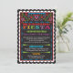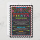 Invitation mexicaine Fiesta Mariage Faire-part avec bord coquillé. Super mignon et coloré pour le couple qui est mariage a un sud de la frontière, l'atmosphère mexicaine, près d'un jour férié mexicain, un mariage de poste ou mariage de destination. Inspiré par des bannières picado lapel cette invitation présente des coeurs et des fleurs décoratifs et des dessins et des bannières aztèques aux couleurs vives sur un arrière - plan noir. Illustration dessinée à la main mon McBooboo.