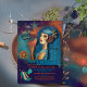 Ce graphique est un art peint à la main inspiré de l'époque Art déco, le style artistique des années 1920-1930. Il présente une femme des années 20 vêtue d'une robe bleue laquée et d'un casquette bleu avec plumes, il y a des talons et un masque hauts, et quelques oiseaux aussi. Le tout sur un bel arrière - plan coloré orange, bleu et violet avec une belle porte bleue ornementale. Art déco - art ornemental. Que vous fassiez une fête maison ou une fête d'entreprise, cette invitation contribuera à un esprit de fête. Mettez tout le texte à jour à votre goût.