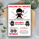 Éblouissez vos invités avec cette invitation de fête d'anniversaire moderne ninja avec de mignons petits ninjas avec typographie accrocheuse contre un arrière - plan blanc. Ajoutez simplement les détails de votre événement sur ce modèle facile à utiliser pour en faire une invitation unique. Retournez la carte pour révéler un élégant motif de démarrage noir et blanc au dos de la carte.