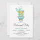 Jolie invitation de la fête de retraite de la femme aux fleurs d'orange. L'Invitation présente des fleurs oranges avec des feuilles et un pot bleu clair et vert menthe.