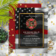 Des invitations élégantes et élégantes à la retraite des pompiers, vous pouvez vous customiser pour votre prochaine célébration. Cette conception comprend le mince drapeau rouge de pompier avec une couche de couverture avec une fausse bordure de feuille d'or, et une bordure d'or emblème de croix de maltais métalliques coordonnés pour votre service d'incendie de la ville.