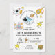 Un astronaute mignon invitation de premier anniversaire dans l'espace extra-atmosphérique avec un premier voyage autour du thème du soleil, avec un astronaute, planètes, météorite, étoiles et équipement en aquarelle.