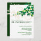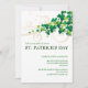 "Que vos bénédictions soient plus nombreuses, que les shamrocks qui grandissent, et qu'elles puissent vous éviter où que vous alliez." Lit une merveilleuse bénédiction irlandaise au fond de l'invitation avec un florilège décoratif de shamrocks chanceux décorant le devant dans cette invitation amusante à célébrer la Saint Patrick !