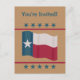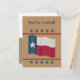 Faites une fête au Texas, même si vous ne vivez pas au Texas ! Cette carte postale est facile à customiser pour envoyer pour votre fête ou événement tout en montrant votre amour du Texas. Cette carte postale est facile à customiser pour tout événement, personnel ou professionnel. Sur le devant, l'art original d'un drapeau Lone Star rouge, blanc et bleu marine est sur un arrière - plan bronzé avec les mots personnalisables Vous êtes invité. Le dessus inférieur et les bordures sont une ligne rouge avec des étoiles bleues sur ou sous elle. L'arrière a un arrière - plan bronzé avec une bordure inférieure de la ligne rouge et des étoiles bleues. Les mots personnalisables avec la date et d'autres informations sont faciles à customiser pour votre événement.