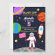 Il est temps de s'éclater et de fêter son anniversaire ! Un astronaute sur la Lune dans l'espace entouré de planètes, de fusées et d'étoiles, le tout dans des couleurs vives et amusantes pour n'importe quel âge. Drapeau rose pour mettre en évidence l'âge ou peut-être le nom.