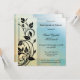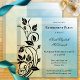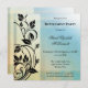 invitation à la retraite de style vintage avec des tourbillons floraux élégants sur un bleu avec un design géométrique veiné jaune passé.
