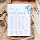 Inspirez une touche d'élégance et de plaisir dans votre douche nuptiale avec le jeu "Word Search", magnifiquement conçu avec un thème bleu poussiéreux arc. Cette activité engageante met les invités à trouver et à encercler les mots liés au mariage cachés dans une grille, offrant une diversion relaxante et agréable pendant votre célébration. Le design sophistiqué de l'arc bleu poussiéreux ajoute une touche raffinée au jeu, et les feuilles de jeu sont disponibles pour téléchargement instantané, ce qui les rend facile à imprimer à la maison. Idéal pour offrir un élément ludique mais interactif à votre douche nuptiale, ce jeu est sûr de divertir vos invités et de compléter le décor de votre événement. Si vous avez des questions ou avez besoin d'aide, n'hésitez pas à communiquer avec nous !