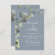 Invitation Dusty Blue Brunch & Bubbly QR Code Eucalyptus