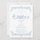 An elegant minimalist wedding design featuring refined baroque line art in soft dusty blue tones. The symmetrical ornamental frame and airy white background create a timeless, European-inspired look that feels both classic and modern. Ideal for couples who love understated luxury, fine detailing, and a calm, sophisticated aesthetic.
