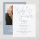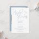 Cette invitation à la douche nuptiale en écriture bleu poussiéreux peut être personnalisée avec toutes vos informations spéciales d'événement et photo et code QR registre au verso. Conçu par Thisisnotme©