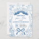 Dusty Blue Chinoiserie Anniversaire Par-Tea Invitation, Floral Toile De Jouy Teacup Anniversaire, Vintage Bow Chinoiserie Afternoon Tea Party