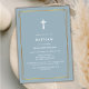 Invitation Dusty Blue Elegant Gold Typographie Croix Baptême