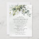 Le design présente un bouquet de verdure aquarelle, d'eucalyptus et un succulent sur une aquarelle bleu poussiéreuse. Le design comporte également des taches d'or peint (imprimé) et de vert. Voir le lien de collection sur cette page pour voir tous les éléments correspondants dans cette belle conception.
