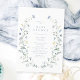 Elégante délicate aquarelle fleur sauvage couronne les détails de votre événement en bleu poussiéreux. Palettes pastel de jaune doux, blanc cassé, vert sauge, bleu poussiéreux, verdure botanique, et verdure botanique, Grandes invitations florales à la douche bébé pour la fête rustique moderne, boho country garden party au printemps et en été.